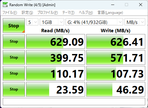 Crystal Disk Makr の結果は以下の通り。