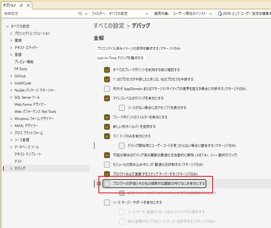 Visual Studio でデバッグ中に「'Settings' に 'Default' の定義がありません」が発生した。