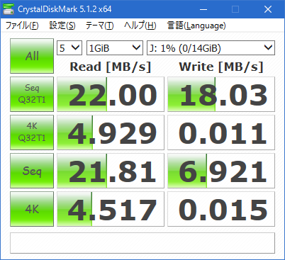 マウスコンピューター B5-R7 のディスクパフォーマンスを計測した。