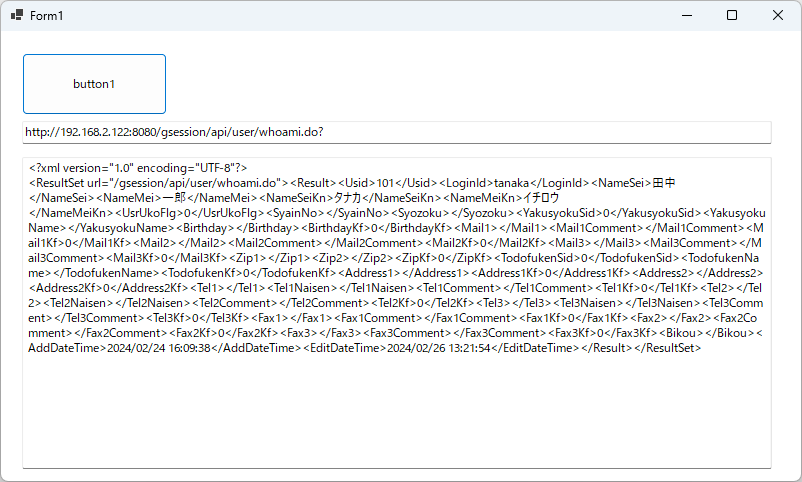 GroupSession の /api/user/whoami.do? をコールすることで、ログインユーザーの情報を取得します。